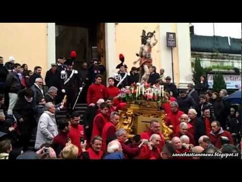 Domenica 20 gennaio 2013 si è celebrato San Sebastiano (leggi post), Santo Patrono di San Sebastiano al Vesuvio (NA). Secondo tradizione, alle funzioni religiose in chiesa segue la processione del simulacro per le vie del paese, quest'anno rimandata a domenica 26 maggio. Ad impedire che l'evento, tanto atteso dai sansebastianesi, si svolgesse nel mese di gennaio, le avverse condizioni meteo, con pioggia fitta e forte vento. A dire il vero un timido tentativo di condurre il Santo in processione c'è stato, concretizzatosi però in un nulla di fatto e nel rientro, dopo un breve percorso, del simulacro in chiesa.